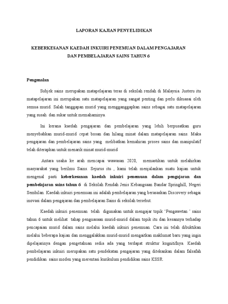 Contoh Lapopran Kajian Kes Sejarah Akhir Dan Hasil Dapatan